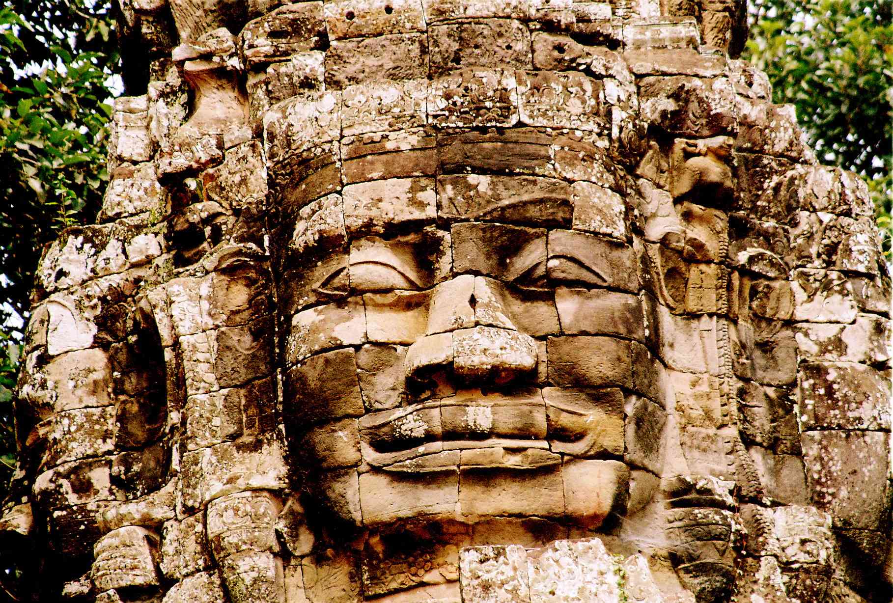 Mysterious Serene Head Sculpture - Bayon - Angkor Wat, Siem Reap, Cambodia.